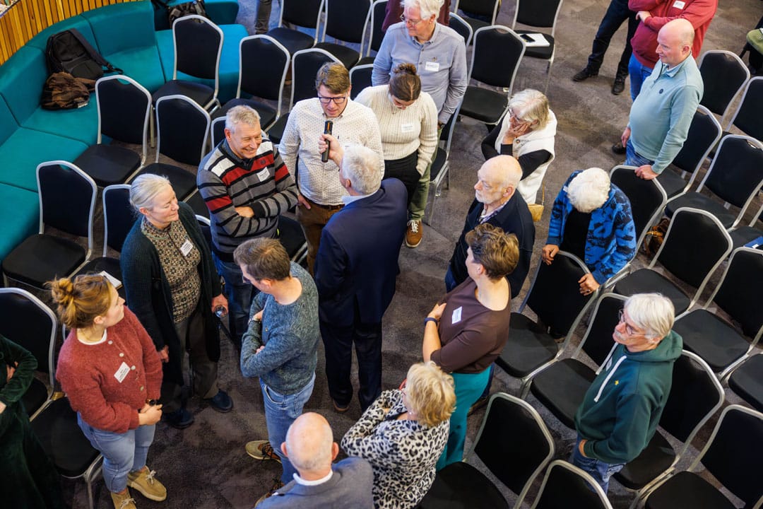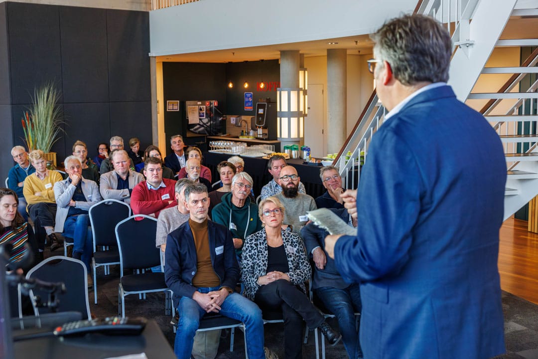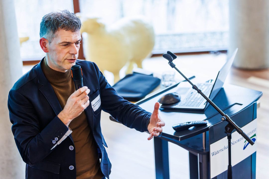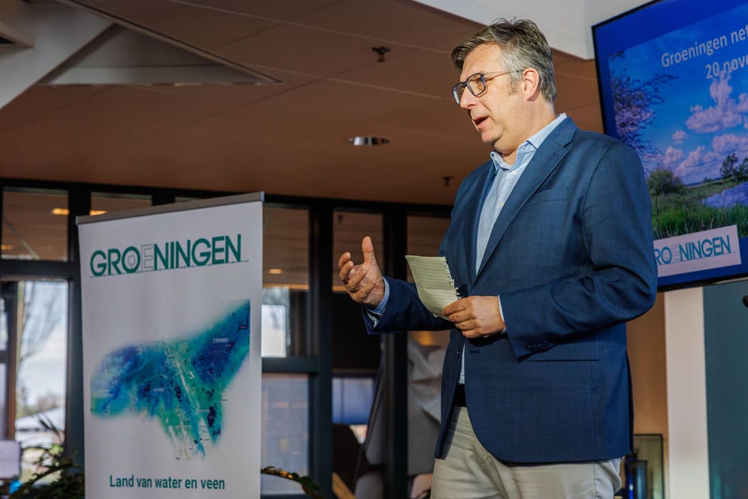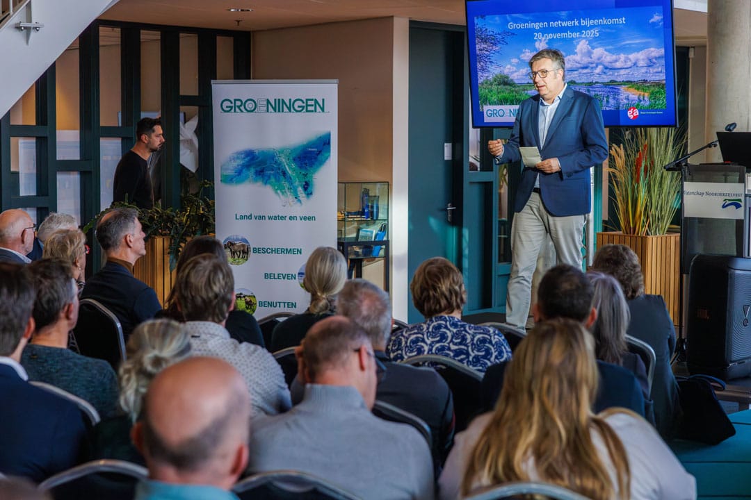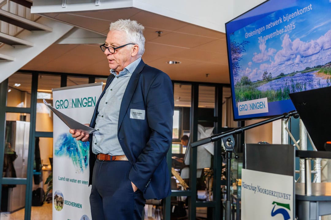 Dijkgraaf Roeland van der Schaaf heette iedereen welkom en benadrukte hoe waardevol het is dat zoveel partijen elkaar bij de netwerkbijeenkomst van Groeningen treffen—van overheden tot landbouw, van natuurorganisaties tot kennisinstellingen.