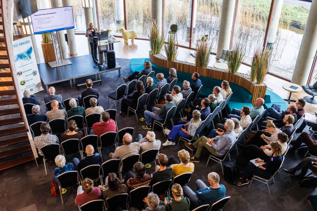 Het Atrium van Waterschap Noorderzijlvest was op 20 november het decor voor de Groeningen Netwerkbijeenkomst. Bestuurders, ambtenaren, kennisinstellingen, natuur- en landbouworganisaties, ondernemers, bewoners en andere geïnteresseerden kwamen bij elkaar om te verkennen hoe water en bodem richting kunnen geven aan de ruimtelijke toekomst van onze regio. Een vraag die steeds urgenter wordt en die deze middag vanuit meerdere perspectieven werd belicht.