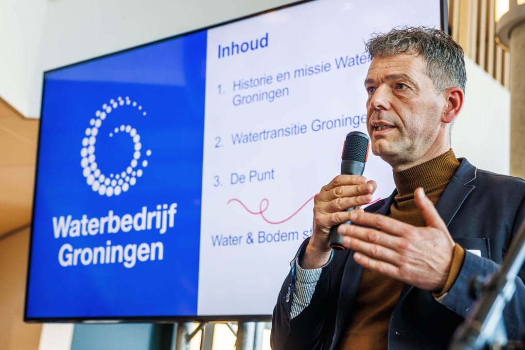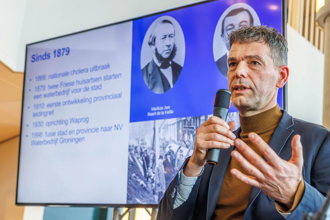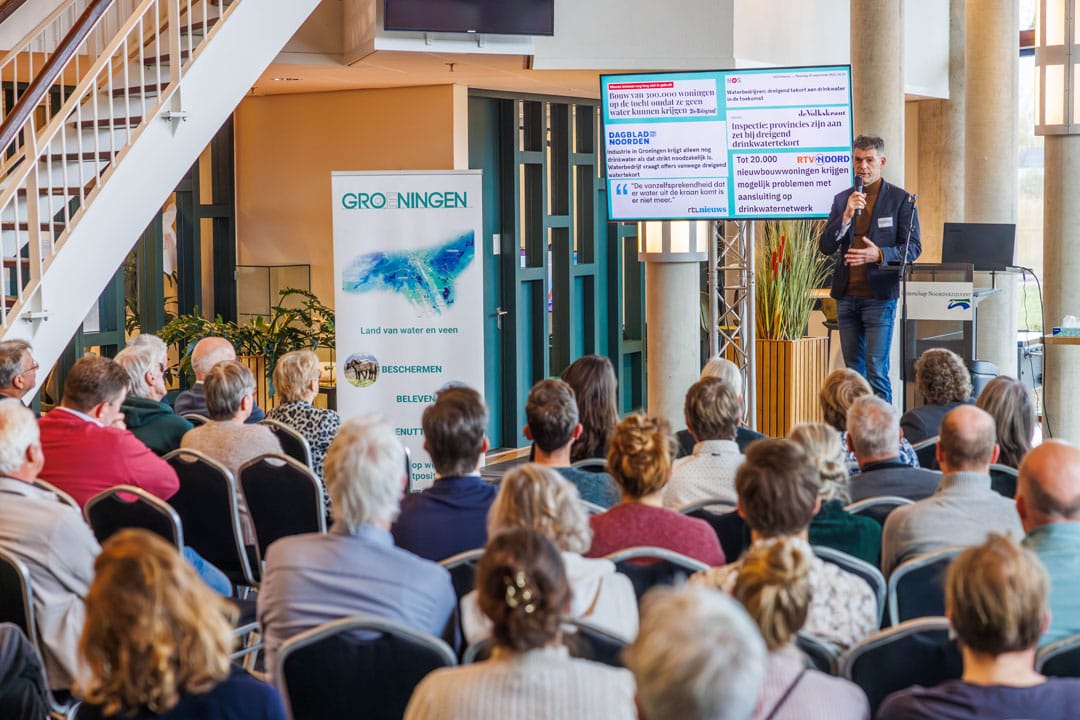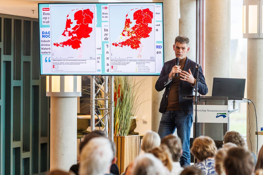 Wout Kompagnie (Waterbedrijf Groningen) nam het publiek vervolgens mee in de gevolgen voor de drinkwatervoorziening, nu de vraag blijft groeien.